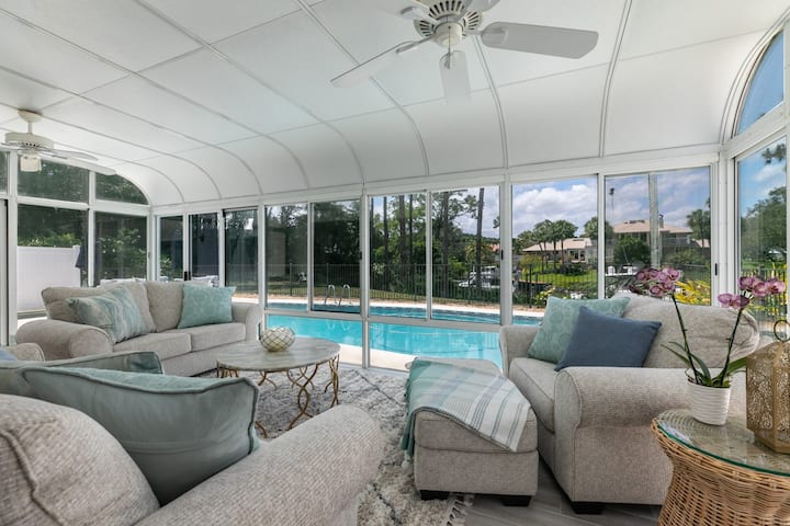 This two-story single-family home will be enjoyable for the whole family. Hi-speed internet, large kitchen with central island, flat screen TV, pool right off sublime sun-room, outdoor patio and seating, grill, fishing right off your dock, and a dock large enough for a 50 foot boat. Located in the beautiful neighborhood of Four Rivers – just a 25 min. boat ride to downtown Stuart, and 15-20 minutes from a number of beautiful beaches!