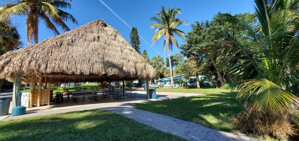 The pet friendly grounds at River Palm Cottages & Fish Camp are planted with lush tropical palms and native plants. You’ll find hammocks hanging in the trees for your enjoyment and relaxation. There are exotic tropical plants such as the “Lobster Claw” Heliconia as well as the “white and orange bird of paradise.”