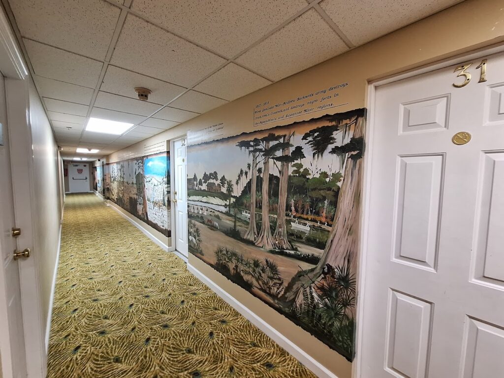 The twilight grandeur of the Old South is captured as you pass through grand double French doors into the main lobby. The lobby is adorned with its open fireplace graciously framed with winding staircases to the sitting room above. The nostalgia of an era gone by will sweep over visitors. You can experience old Florida at the Seminole Inn. Famous Windsor Dining Room serves breakfast, lunch, and Sunday Brunch. Silence befalls those who enter the Main Dining Room for the first time. The Palladium windows sweeping from hardwood floor to the 12-foot pecky cypress ceiling create an atmosphere of unique beauty returning from the past. The massive 20 inch thick walls remind visitors that over 70 years have passed since people first enjoyed elegant dining in this room. With service and quality as the primary focus of the Seminole Restaurant staff, it is no wonder our restaurant has been acclaimed statewide. Minutes to Beach: 30.